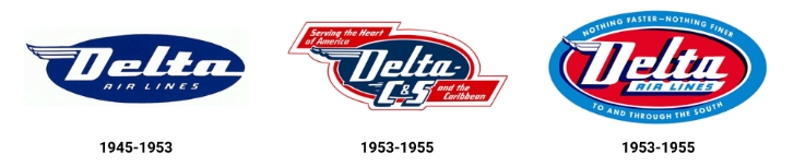 In all three variations, the name of the company was in the center of an oval. A special version was used from 1953 to 1955, after Chicago & Southern Air Lines was acquired by Delta. The "C&S" designation was added to ensure the transition and brand recognition on the airlines previously served by Chicago & Southern.